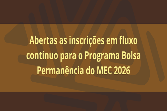 A Pró-Reitoria de Gestão Estudantil informa que estão abertas, em fluxo contínuo, as inscrições para o Programa Bolsa Permanência do Ministério da Educação (PBP/MEC), destinado a estudantes indígenas e quilombolas ingressantes em 2026 da Universidade Federal do Oeste do Pará.