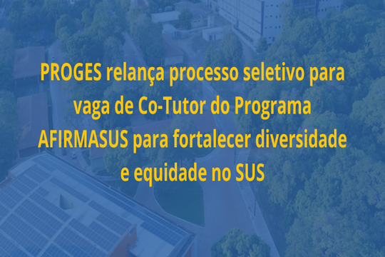 A Universidade Federal do Oeste do Pará (UFOPA), por meio da Pró-Reitoria de Gestão Estudantil, relançou o processo seletivo para vaga de Co-Tutor no âmbito do Programa Nacional AFIRMASUS, iniciativa da Secretaria de Gestão do Trabalho e da Educação na Saúde (SGTES) do Ministério da Saúde, com o objetivo de promover a diversidade e o atendimento humanizado no Sistema Único de Saúde (SUS) .